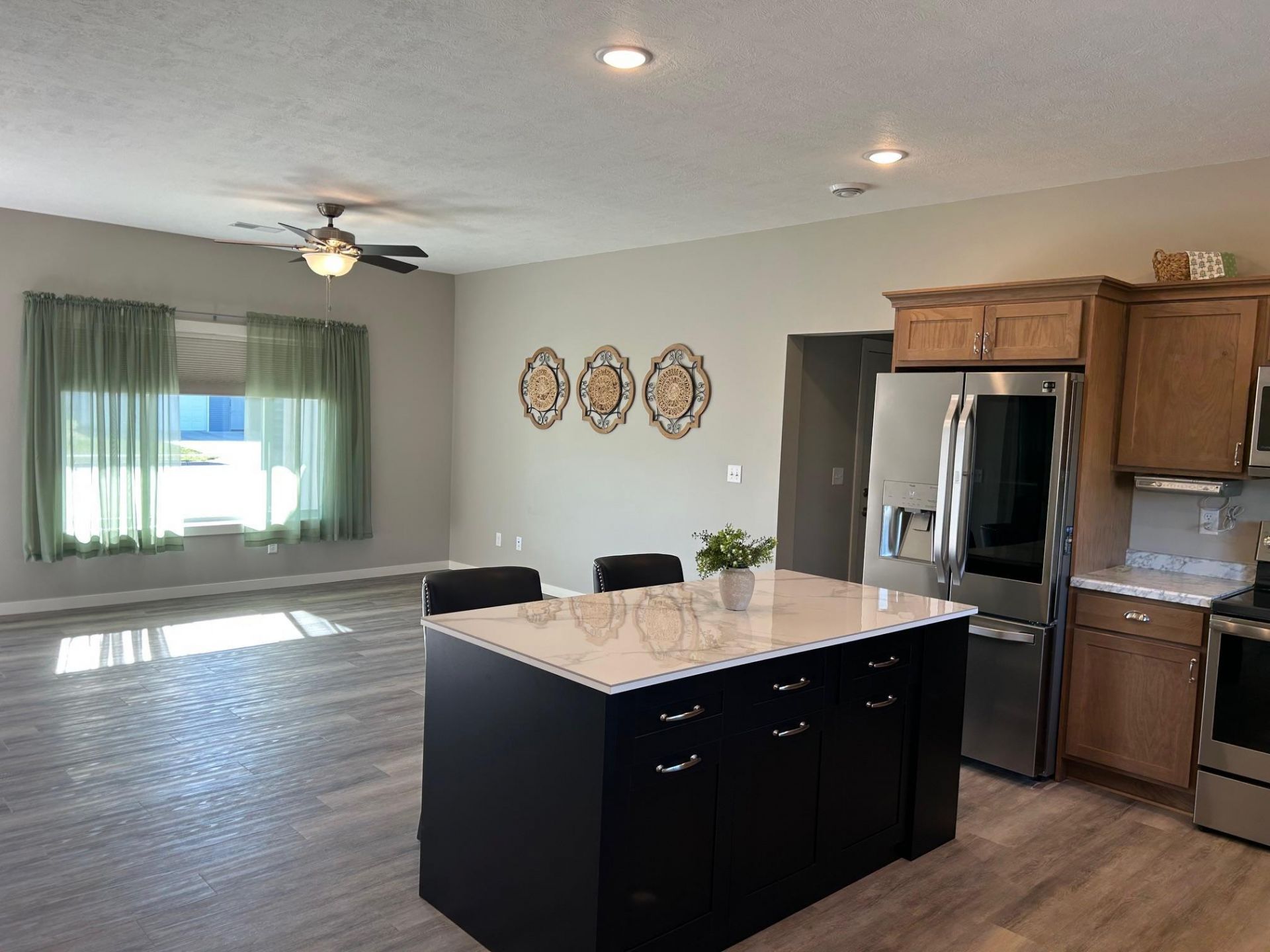 Recently built in 2023, this beautifully maintained single level patio home offers modern comfort and convenience. Featuring 2 bedrooms and 1 bathroom, the open-concept floor plan creates a bright and welcoming living space, complete with a stylish island and seating -perfect for entertaining or everyday living. The home includes durable vinyl plank flooring through the main living areas, with cozy carpet in both bedrooms. Since purchase, thoughtful upgrades have been added, including new washer, dryer, as well as an upgraded dishwasher and touch kitchen faucet. Step outside to enjoy the added cement patio just off the rear door-ideal for relaxing or hosting guests. Additional improvements include an additional cement parking space, a new 8'x12' storage shed, and finished landscaping giving this property both function and curb appeal. Move in ready and designed for easy living.